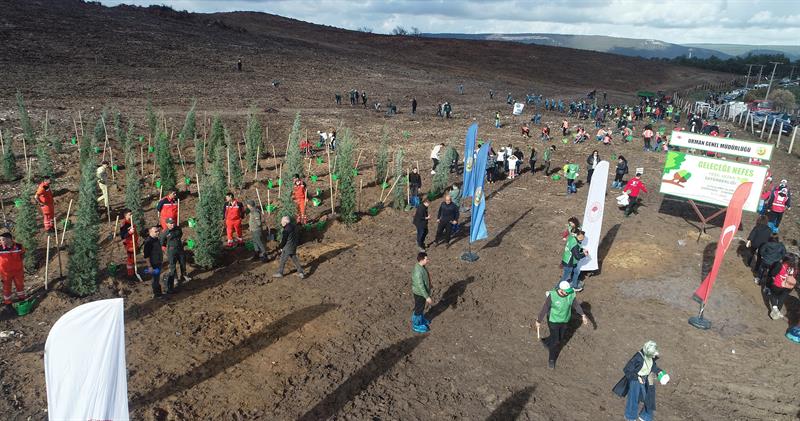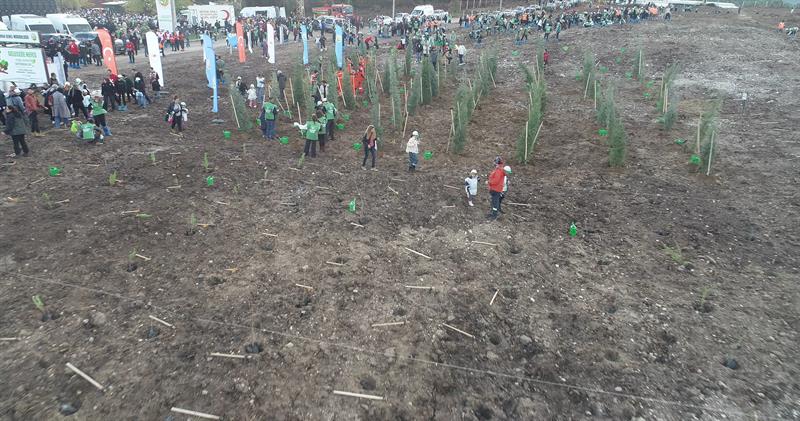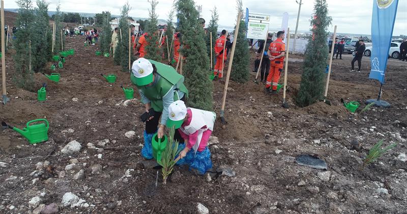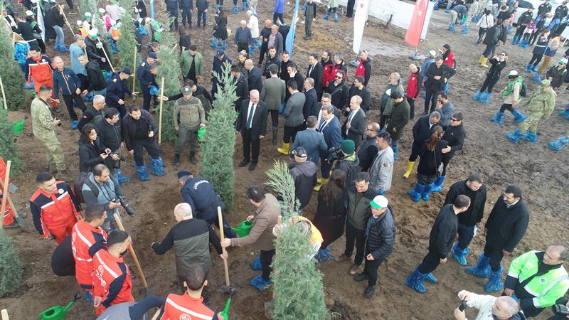 Konuşmaların ardından protokol üyeleri, öğrenciler ve vatandaşlar hep birlikte fidanları toprakla buluşturdu. Katılımcılar, diktikleri fidanlara ilk can suyunu verirken, bu fidanların büyüyerek Türkiye'nin geleceğine nefes olması yönündeki ortak temennilerini dile getirdi.