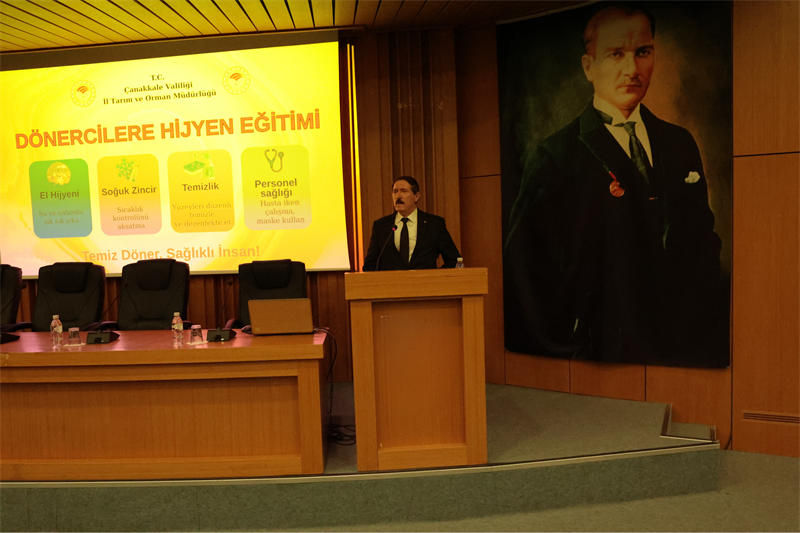 Çanakkale İl Tarım ve Orman Müdürlüğü, halk sağlığını korumak ve gıda güvenliği standartlarını en üst seviyeye çıkarmak amacıyla il genelindeki döner işletmecilerine yönelik kapsamlı bir bilgilendirme toplantısı gerçekleştirdi. Çanakkale Ticaret Borsası toplantı salonunda düzenlenen eğitime Çanakkale İl Tarım ve Orman Müdür Yardımcısı Ahmet Kılınç, Gıda ve Yem Şube Müdürü Demet Kocabıyık, Kasaplar Fırıncılar Lokantacılar Ve Gazinocular Esnaf Odası Başkanı Selahattin İş, teknik personel ve çok sayıda işletme sahibi katılım sağladı.