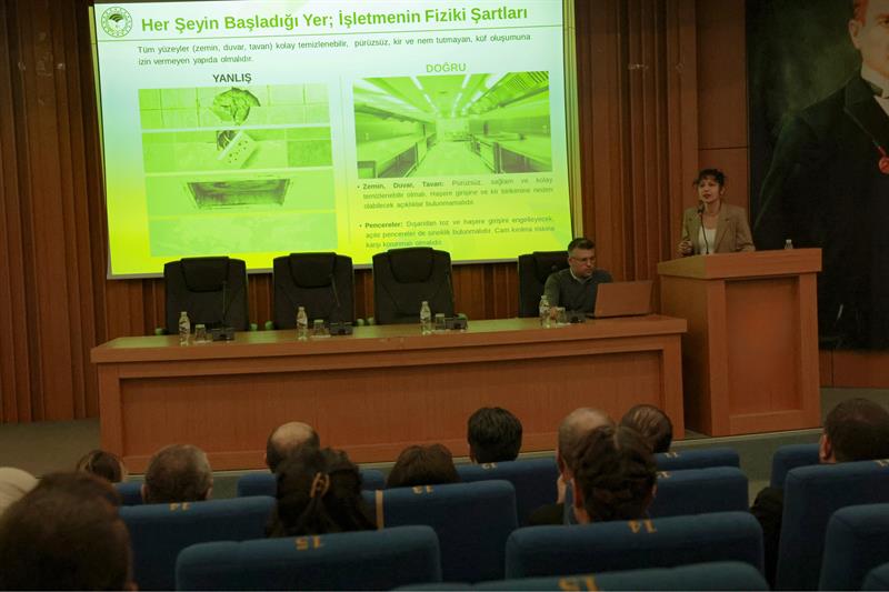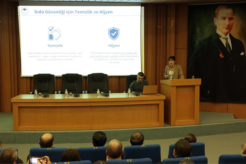 Programın devamında ise Çanakkale İl Sağlık Müdürlüğü Halk Sağlığı Uzmanı ve Bulaşıcı Hastalıklar Birim Sorumlusu Uzman Tabip Bekir Büyükakın, bulaşıcı hastalıklar konusunda bilgilendirici bir sunum gerçekleştirerek halk sağlığının korunmasına yönelik önemli uyarılarda bulundu. İşletmecilerin merak ettikleri soruların yanıtlanmasıyla sona eren eğitimde, gıda güvenliğini sağlamanın bir zincirin halkalarını sağlam tutmak gibi olduğu ve üreticiden denetçiye kadar her bir paydaşın görevini doğru yapmasıyla toplum sağlığının korunabileceği vurgulandı.
